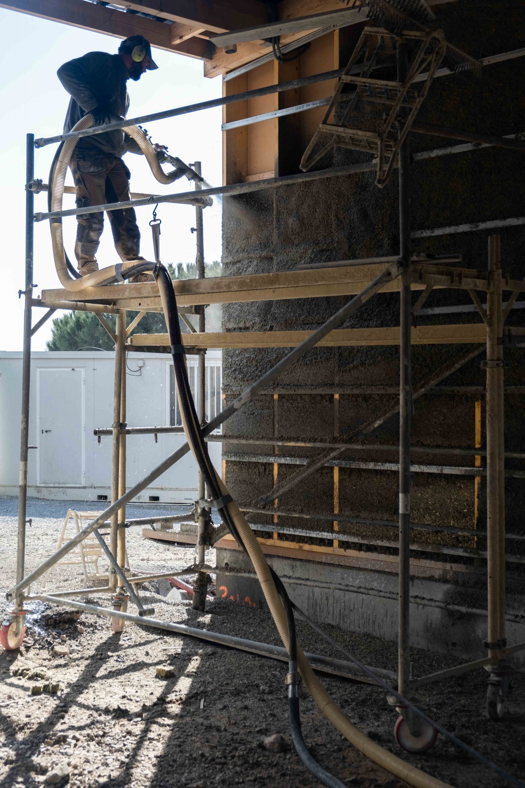 L’isolation de l’enveloppe de cet ERP de 3e catégorie est réalisée en béton de chanvre projeté.